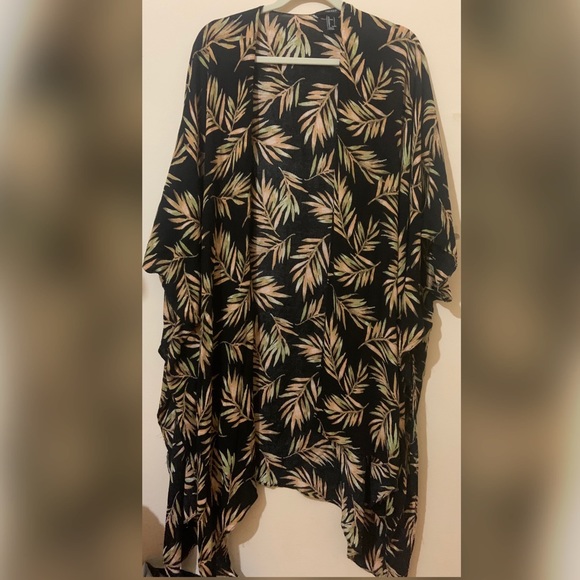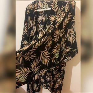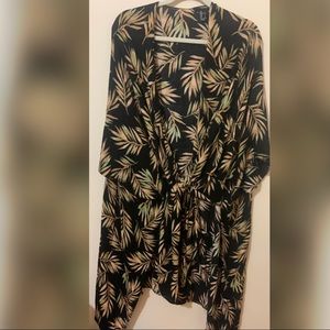 This palm pattern cover up can be tied in the front but also worn open. It is long, about above my knees. A size large and in great condition.