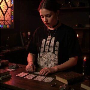 Palm Reader Graphic Tee W/ Occult Design & White Print – Blackcraft Unisex NWT