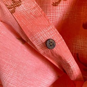 100% cotton. Crisp. Salmon/Pink color. Extra button incl. Excellent condition. Like new. Non-smoking home.