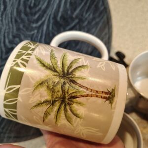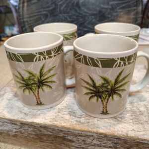 Enjoy your favorite beverages with this elegant Palm Tree Ceramic Mug Set. Featuring a soothing green and cream design, these mugs add a touch of tropical charm to your dining experience.
