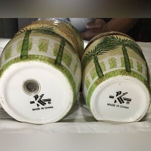 Enhance your bathroom decor with this elegant bath accessory set featuring a palm tree design. The green and cream colors bring a touch of nature to your space.