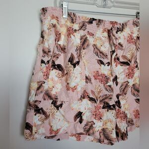 Cute shorts in a pink Hawaiian themed print with palm trees and floral design. Drawstring waist and pockets. Linen Blend. Casual, comfortable and easy to wear. Excellent condition. Tagged size XL measures approximately 15 inches long 4 inseam 38 waist.
