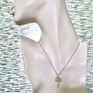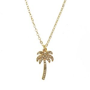 Palm Tree Necklace Gold Plated Rhinestone Pendant & Cable Chain Layering Jewelry