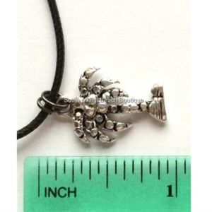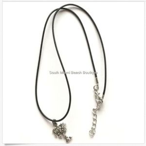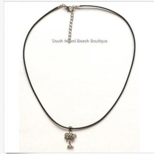Palm Tree Necklace Silver Plated Black Cord Coconut Island Beach Surfer Hawaiian