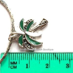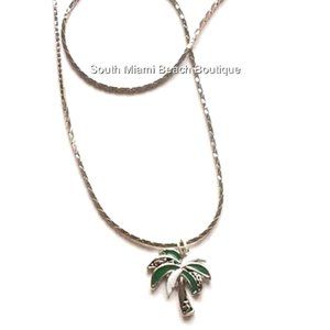 Palm Tree Necklace Silver Plated Island Beach Hawaii Nautical Enamel Coconut 18"