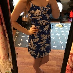 blue & white knee length dress. stretchy waist, spaghetti straps. never worn