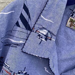 Palm Grove Boats & Lighthouses Sz 2X Button Up Slits On Sides Is unraveling A little
