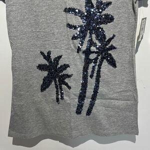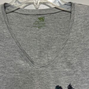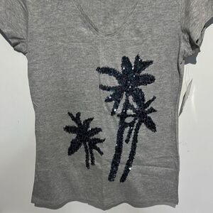 Palm Harbour Women's Gray Sequined V-Neck Short Sleeve T-Shirt Petite Small NWT