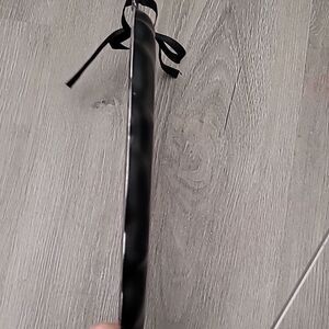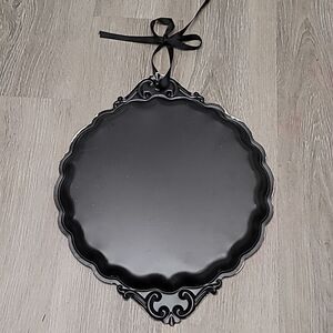 Metal sign, the image is a sticker, and the hanger is a black ribbon