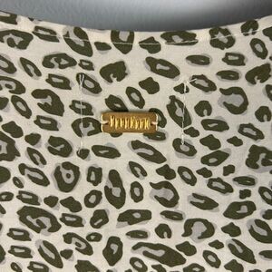On-Trend Print: Features a gorgeous, soft leopard/animal print in shades of olive green/khaki and cream/tan.