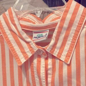 Palmetto’s Ladies Orange Striped Chambray Button Down Shirt, Medium