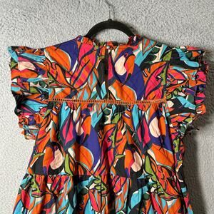 Palms Away Dress Womens S Multicolor Short Sleeve Mini 100% Cotton Dress Summer Vacation