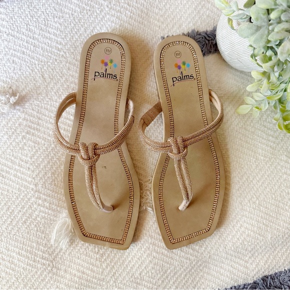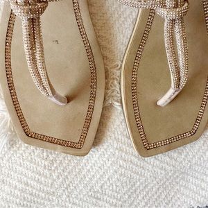 -Good condition, some wear on bottom -Thong toe -Rhinestone details