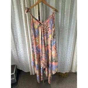 Palmwave Hawaii Tropical Leaves Adjustable Self Tie Straps Handkerchief Dress One Size
