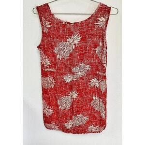 Palmwave Hawaii Womens Medium Sun Dress Red Floral Sleeveless Drawstring Waist