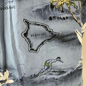 Super fun and classic Hawaiian style button down. It measures 21 inches across the chest laying flat and is 26 inches in length from shoulder to hem.