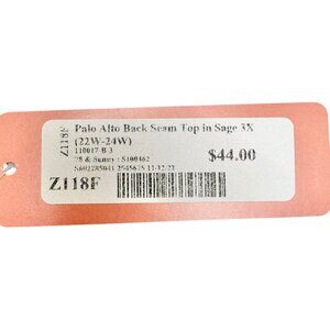 Palo Alto Back Seam Top Womens 3X Sage Green By 78 & Sunny SS Loose Fit