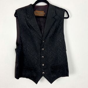 Palo Duro Men’s Black Tapestry Vest Size L Button Down Prom Cocktail Wedding