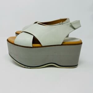 Paloma Barceló Platform-Sole Sandals-Grey Slingback-Size 9