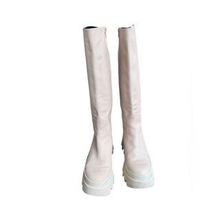 leather, no appliqués, solid color, leather backing, round toeline, square heel, rubber sole, contains non-textile parts of animal origin, chunky boots