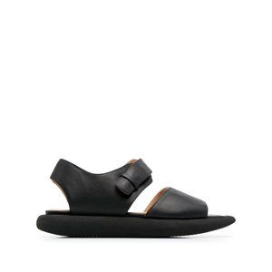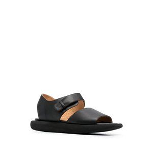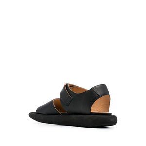 Black leather 2075 leather sandals from PALOMA BARCELÓ featuring leather lining, branded insole, open toe, single toe strap, ankle strap and rubber sole.