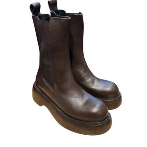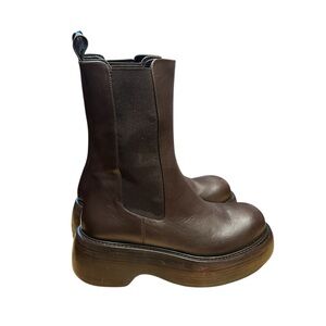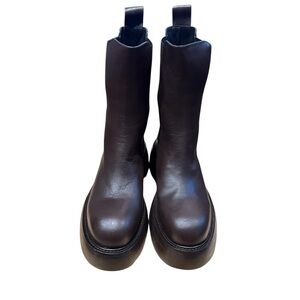 Paloma Barcelo Marlon Dark Brown Leather Chunky Stack High Chelsea Boots 9-9.5