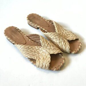 Paloma Barcelo Raffia Sandals Slide Womens 39 9 Natural Open Toe Slip On Leather