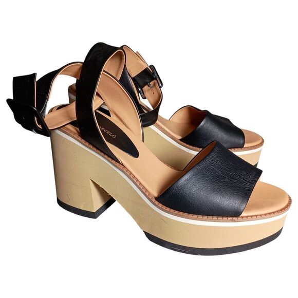 Paloma Barcelo Sandals Platform Heels Ultra High Ankle Strap Black Womens 41/ 11
