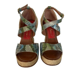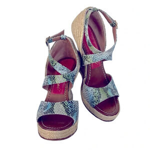 Paloma Barcelo Snakeskin 4” Funky Shape Espadrille Wedge Strap Sandals size 10