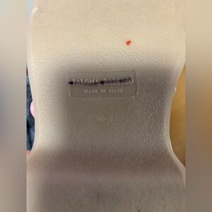 In great condition! only flaw is a small pen mark on the back of one of the shoes as shown in the photos, not too noticeable though!