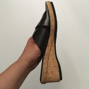 Paloma black leather wedge sandals. Size 8. Excellent used condition. Please refer to photos and zoom in. Only worn twice. Made in Italy.