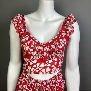 Paloma Blue top skirt set small red isla heart ruffle resort ruching Ibiza