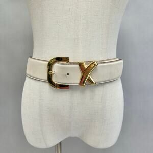 Paloma Picasso Signature "X" Beige Leather Belt Gold Size Large L/80 Italy