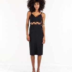 Paloma Wool Cut Out Pin Stripe Axel Three in One Midi Dress + Skirt + Top Black
