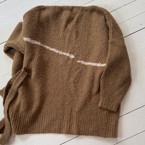 Paloma Wool Brown Cardigan with fun cream colored stripe across the front and back. The belt is removable. This sweater is so soft and cozy, comfortable, and not itchy. Wore a handful of times. Great Used Condition. Perfect for a size L. PTP: 24” Length: 31”