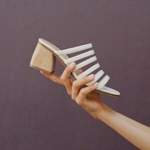Paloma Wool Maria Sandal Off White Patent Leather Sculptural Heel 38 PLEASE READ
