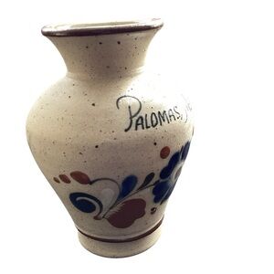 Paloma’s, Mexico Mexican Small Sandstone Bud Vase Blue Flower artist signed Original