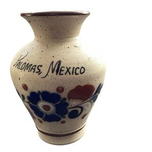 Paloma’s, Mexico Mexican Small Sandstone Bud Vase Blue Flower Original