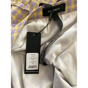 Size 14 32” waist 21” long Check Ruffle Skirt Zipper up side MSRP: $59.00 Main: 62% Polyester 22% cotton 16% viscous Lining: 65% Polyester 35% Cotton