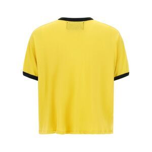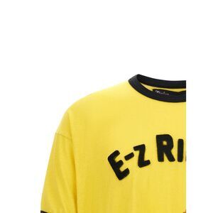 'Ez Riders Ringer' jersey T-shirt in flamed used hemp blend with front flocked print, crew neck, short sleeves with dropped shoulders.
