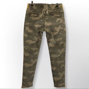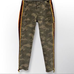 Stylish camouflage ankle jeans. Features bold side stripes. Perfect for casual wear.