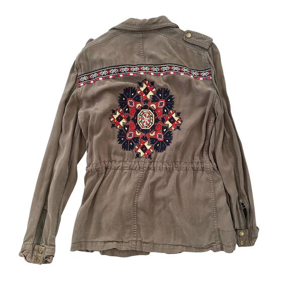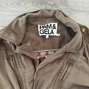 Pam & Gela Designer Brown Soft Knit Aztec Embroidered Jacket Size S