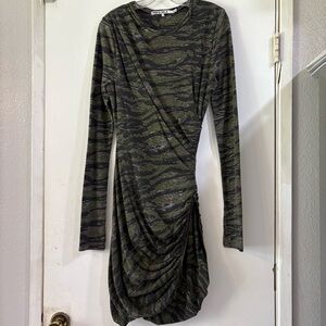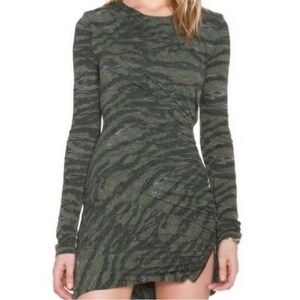 Pam Gela Dress Long Sleeve Camo Twisted Shirred Zipper Slit Cinched S Camouflage