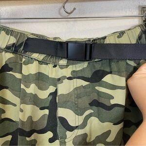 Pam & Gela Green Camouflage Print Cargo Cropped Military Pull On Pants Size S