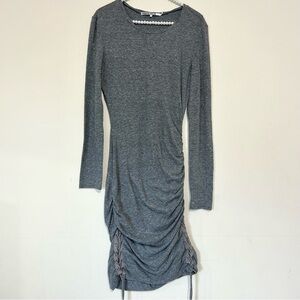 Pam & Gela Heathered Gray Ruched Lace Up Long Sleeve Dress SIZE MEDIUM