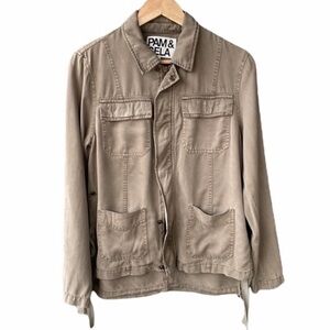 Pam & Gela Jacket Coat Utility Cargo Green Tie Detail Zip Preppy Casual Sz Small