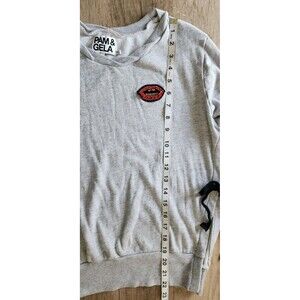 Pam & Gela Lips Patch Sweatshirt Women’s Small Gray Side Tie Made in USA