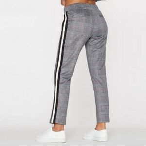 Stylish joggers with a monochrome pattern. Features a drawstring waist and sleek black side panels.