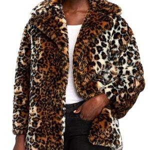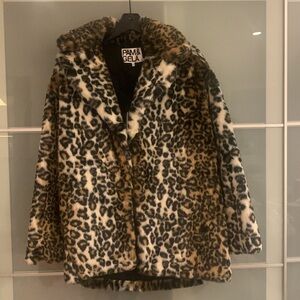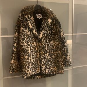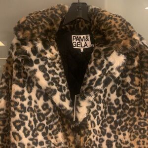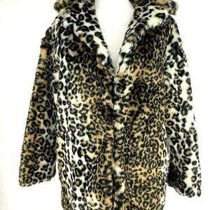 Pam & Gela P/S Brown Leopard Faux Fur Coat NEW SOFT WARM furry