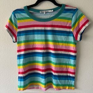 Pam & Gela Rainbow Ringer Tee Teal Band Size P XS